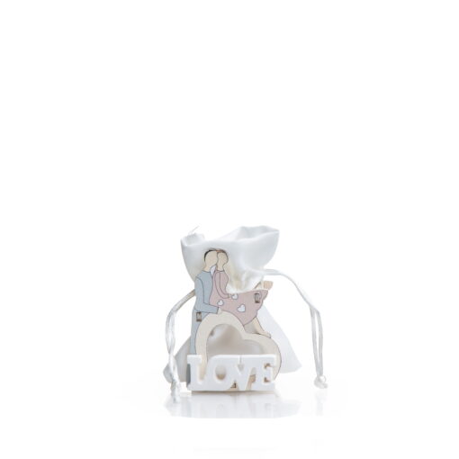 6 שקיות בד רוחב 7 גובה 10 ס"מ בתוך זוג מאוהב LOVE עשוי מעץ
